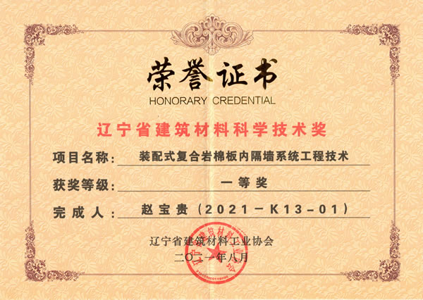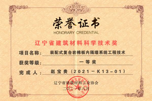 2021年度遼寧省建筑材料科學(xué)技術(shù)一等獎(jiǎng)