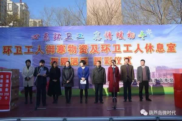 葫蘆島市總工會(huì)黨組副書記、常務(wù)副主席吉銀霞在儀式上講話說,在全市上下深入學(xué)習(xí)貫徹黨的十九大精神和凝心聚力決勝全面小康社會(huì)之際。進(jìn)一步倡導(dǎo)形成全社會(huì)理解、尊重、關(guān)愛環(huán)衛(wèi)工人的良好氛圍,是建設(shè)和諧城市的重要內(nèi)容之一。向社會(huì)各界發(fā)出了《關(guān)愛環(huán)衛(wèi)工人,共建美麗濱城》倡議書,希望幫助環(huán)衛(wèi)工人解決工作和生活中的現(xiàn)實(shí)問題,社會(huì)各界能伸出溫暖之手,為環(huán)衛(wèi)工人做一些力所能及的事,把更多關(guān)心關(guān)愛送給他們。