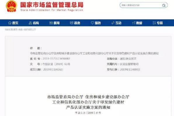 為貫徹落實(shí)《質(zhì)檢總局 住房城鄉(xiāng)建設(shè)部 工業(yè)和信息化部 國家認(rèn)監(jiān)委 國家標(biāo)準(zhǔn)委關(guān)于推動(dòng)綠色建材產(chǎn)品標(biāo)準(zhǔn)、認(rèn)證、標(biāo)識(shí)工作的指導(dǎo)意見》,推進(jìn)綠色建材產(chǎn)品認(rèn)證工作,市場(chǎng)監(jiān)管總局、住房和城鄉(xiāng)建設(shè)部、工業(yè)和信息化部制定了《綠色建材產(chǎn)品認(rèn)證實(shí)施方案》。
