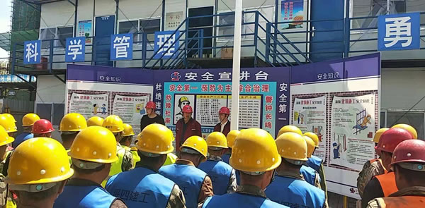 會上,集團安技部于海從人的不安全行為、物的不安全狀態(tài)、現(xiàn)場作業(yè)環(huán)境等方面進行了公司級安全教育。現(xiàn)場管理人員劉政、彭麗群分別進行了項目級安全教育,并要求班組長每天班前進行班組級安全教育。
