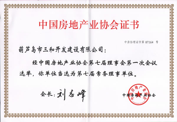 | 三和開(kāi)發(fā)建設(shè)有限公司當(dāng)選為中國(guó)房地產(chǎn)協(xié)會(huì)第七屆理事單位 |