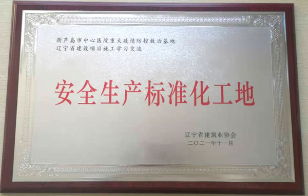 2021年11月,我集團(tuán)承建的葫蘆島市中心醫(yī)院重大疫情防控救治基地,被遼寧省建筑業(yè)協(xié)會評為“安全生產(chǎn)標(biāo)準(zhǔn)化工地”。