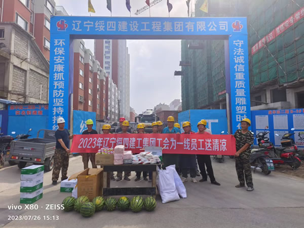 7月25日—28日,遼寧綏四建設(shè)工程集團有限公司開展送清涼活動。集團董事長趙寶貴親自布置,黨支部書記張艷舫、工會主席薛桂枝、所屬企業(yè)相關(guān)負責(zé)人房建、喬揚、王剛分別帶隊,慰問高溫下堅守在一線的員工們。