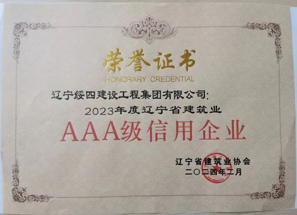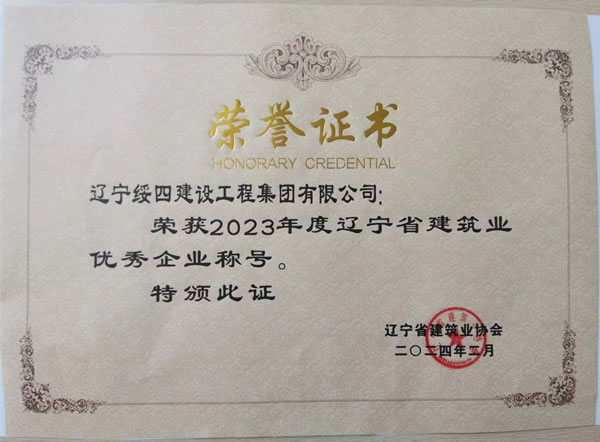 2024年5月,遼寧綏四建設工程集團有限公司榮獲遼寧省建筑業(yè)協(xié)會頒發(fā)的“2023年度遼寧省建筑業(yè)AAA級信用企業(yè)”和“2023年度遼寧省建筑業(yè)優(yōu)秀企業(yè)”榮譽證書。