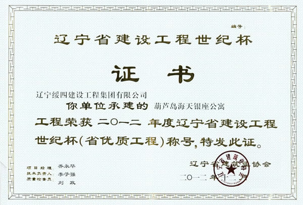 2013年3月12日在沈陽召開2012年度遼寧省建設(shè)工程世紀(jì)杯(省優(yōu)質(zhì)工程)頒獎(jiǎng)大會(huì):