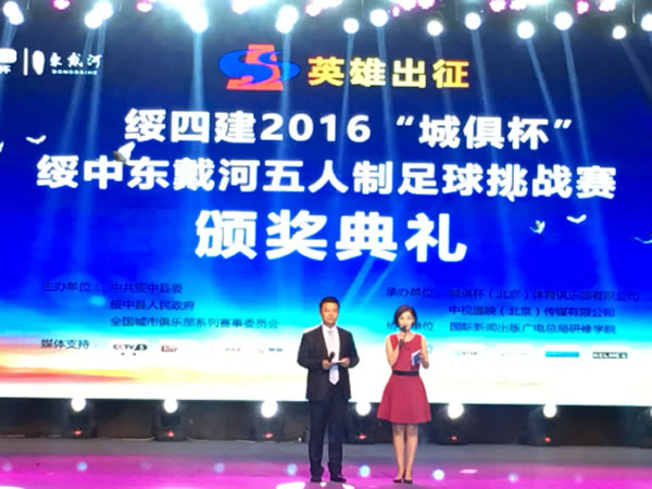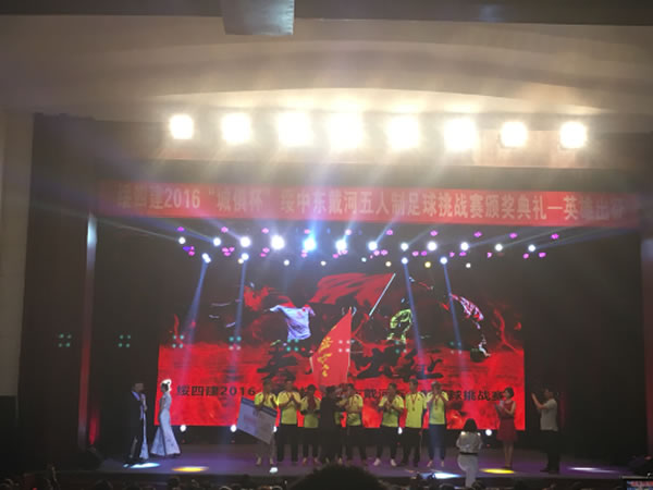 歷時4天的“綏四建2016城俱杯”綏中東戴河五人制足球挑戰(zhàn)賽于10月5日下午在綏中體育場落下帷幕。晚上19:00,主題為“英雄出征”的“綏四建2016城俱杯”綏中東戴河五人制足球挑戰(zhàn)賽頒獎晚會在綏中文化中心舉行。