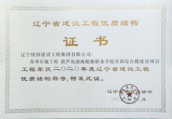 “葫蘆島渤海船舶職業(yè)學(xué)院實(shí)訓(xùn)綜合樓建設(shè)項(xiàng)目”榮獲2020年度遼寧省建設(shè)工程優(yōu)質(zhì)結(jié)構(gòu)稱號