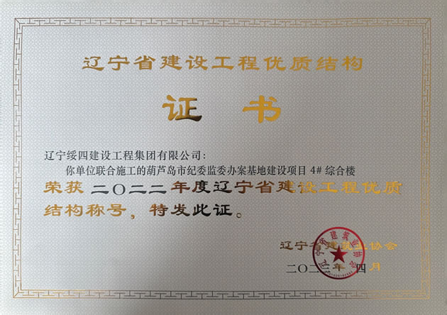 | 葫蘆島市紀(jì)委監(jiān)委辦案基地建設(shè)項(xiàng)目 4# 綜合樓榮獲 2022年度遼寧省建設(shè)工程優(yōu)質(zhì)結(jié)構(gòu)稱號(hào) |